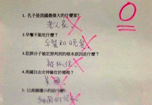 日前網友《爆笑公社》上傳一個0分小學考卷,爆笑的問答讓網友讚他為百年難得一見的天才!IQ應該有120!