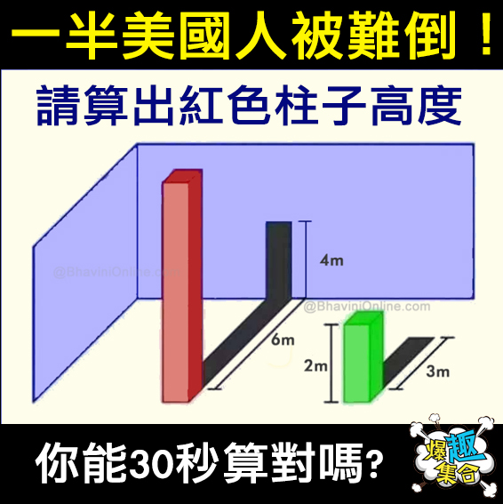從綠色柱子推算,2 m 的柱高等於 3 m 的影子,
